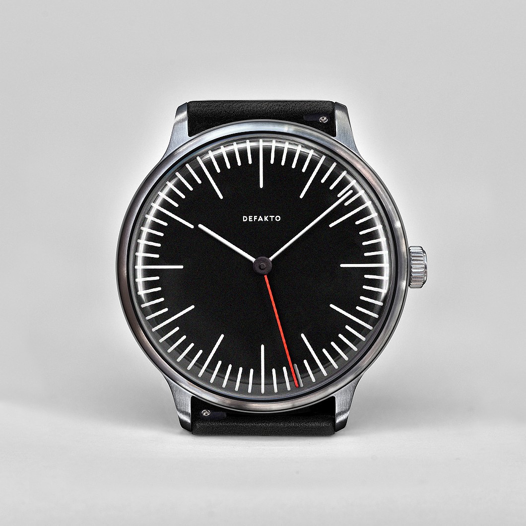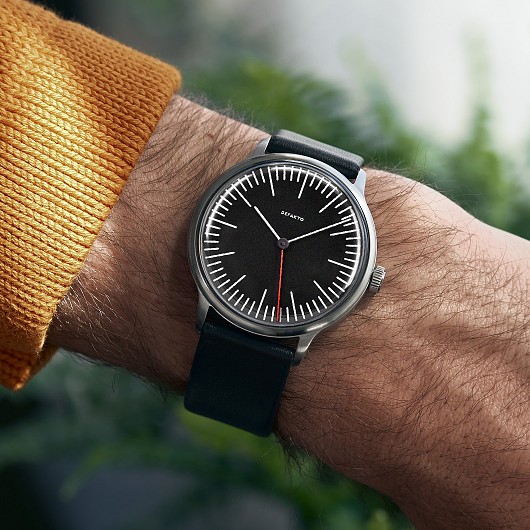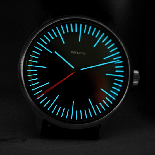 Die überarbeitete Version der erfolgreichen Defakto Vektor Serie, die Vektor Orbit (40mm x 44mm x 9,8mm, 58g) bietet zahlreiche Neuerungen: So verfügt sie über ein 3-teiliges 40mm Ickler-Uhrengehäuse (wasserdicht 5 Atm), sowie ein kratzfestes, innen entspiegeltes Saphirglas und taktet über das automatische Schweizer Uhrwerk ETA 2824-2. Alle drei Zeiger sowie die Indexe sind mit nachtleuchtendem Superluminova (bgw9 und red) belegt.